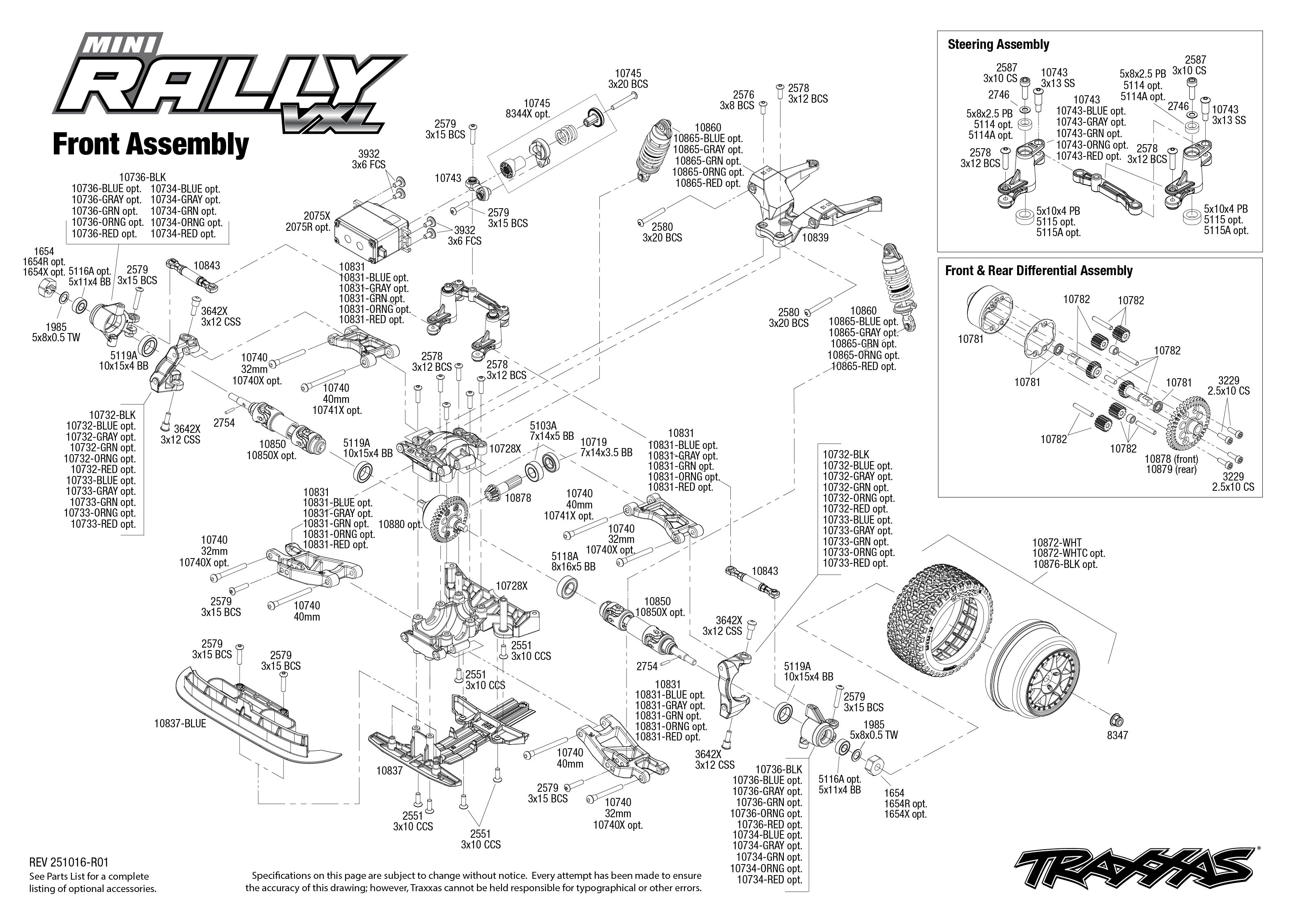 Mini Rally VXL (108046-1) Front Assembly Exploded View.               Trykk her!
