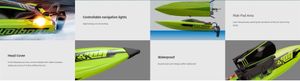 Stor, rask og knæsj grønn! UDI Saurus har en topphastighet på hele 40 km/t og måler 57cm i lengden. Saurusen har børsteløs motor som er vannavkjølt, det samme er ESC. Denne båten har en rekke smarte og praktiske funksjoner som selvretting og alarmer på radio for både dårlig signal hvis du kjører for langt bort eller for lavt batterinivå og lys på baksiden av skroget slik at du ser den enda enklere i skumringen. Båten leveres ferdig montert og klar til bruk med 3s LiPo batteri og lader til dette. Alt du trenger i tillegg er 4stk AA batterier til radio så er du klar til å ut og kjøre.