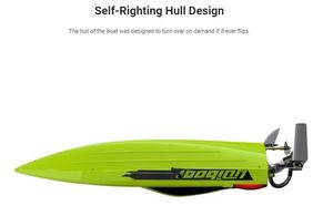 Båten er konstruert slik at skulle du være uheldig og havne opp ned i vannet, så er det ikke noe problem. Ved først å ta revers på håndkontrollen, og så full fart, så vrir skroget seg rundt riktig vei. Dette skjer grunnet skrogets smarte design sammen med rotasjonskraften i motoren når du gir på.